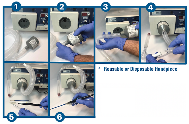 3) Attach the handpiece connector to the distal end of the handpiece (same as Bovie, Cooper, and Utah).